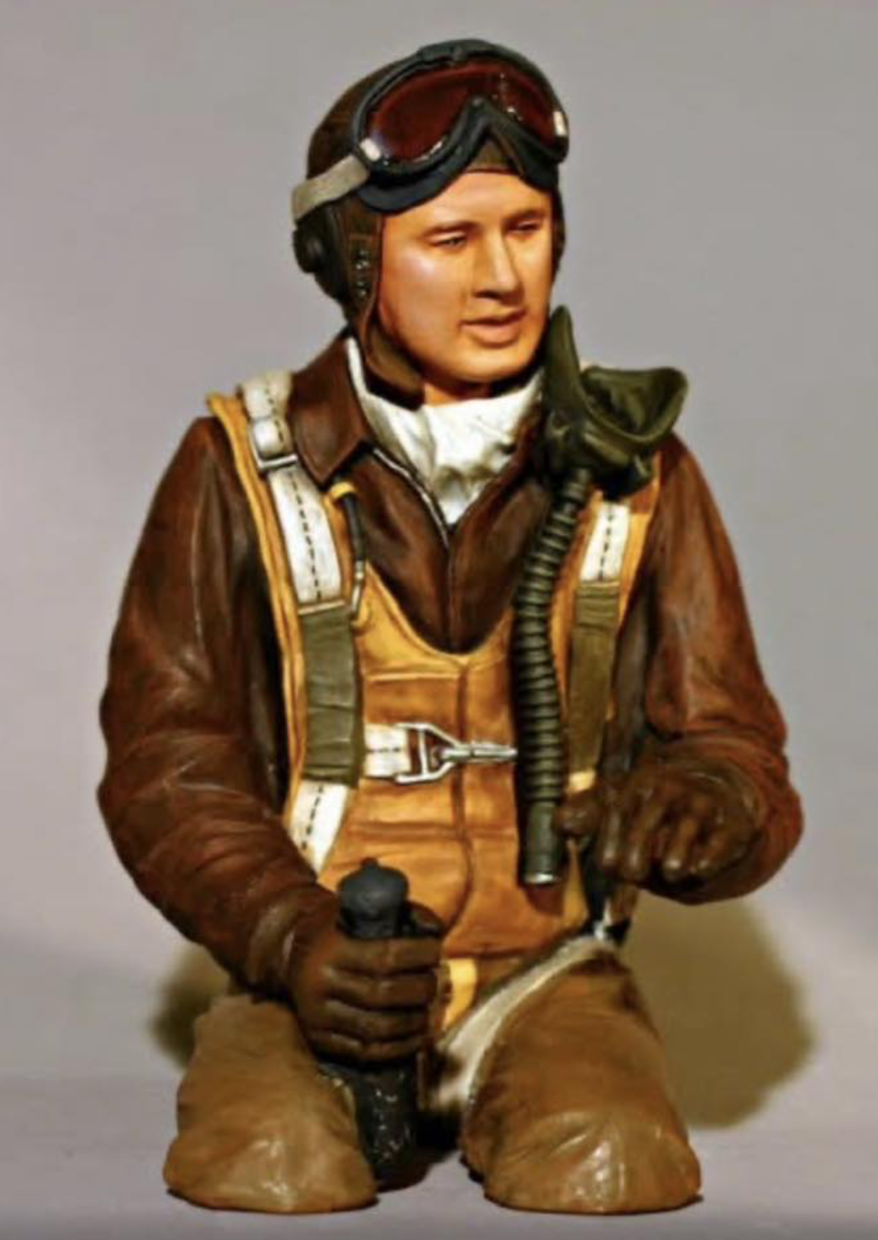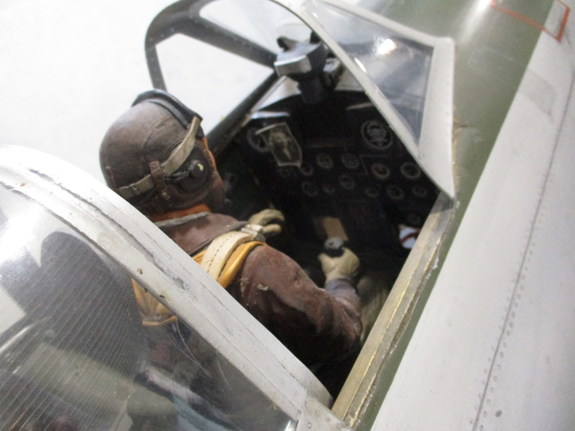 Included in the photos below is a front-facing close up photo of the pilot, Bob Sweeney, which is installed in the replica plane. The replication of Bob was done by Lyle Vasser and the photo was sent to us by Tanya Vasser.